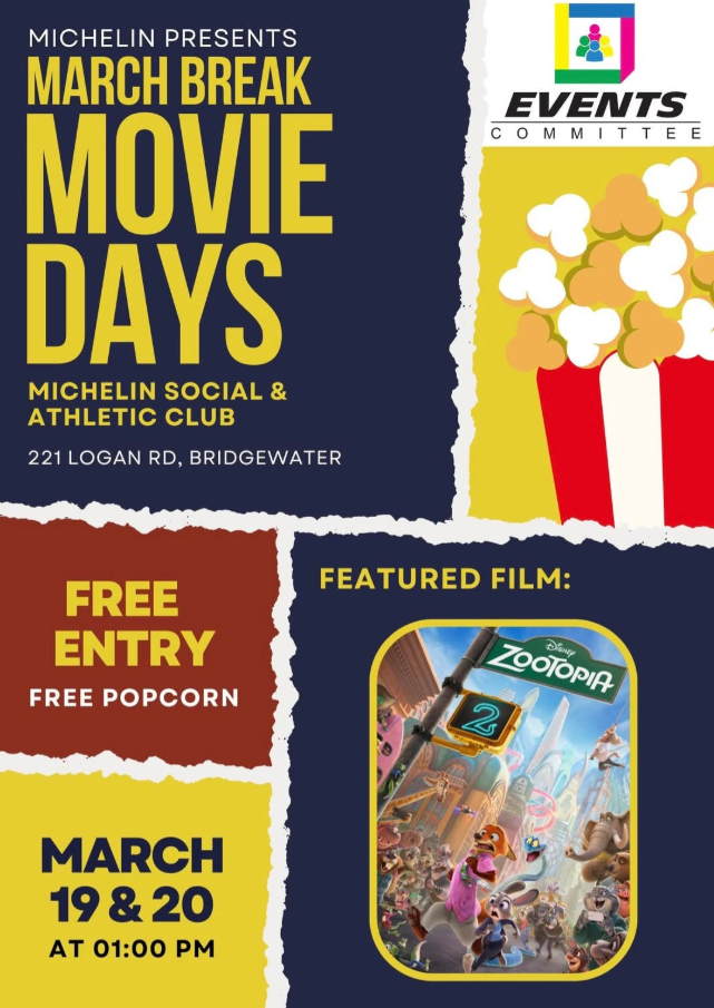 Zootopia 2 will be playing at the Michelin Social Club, starting at 1pm, on Friday, March 20th.