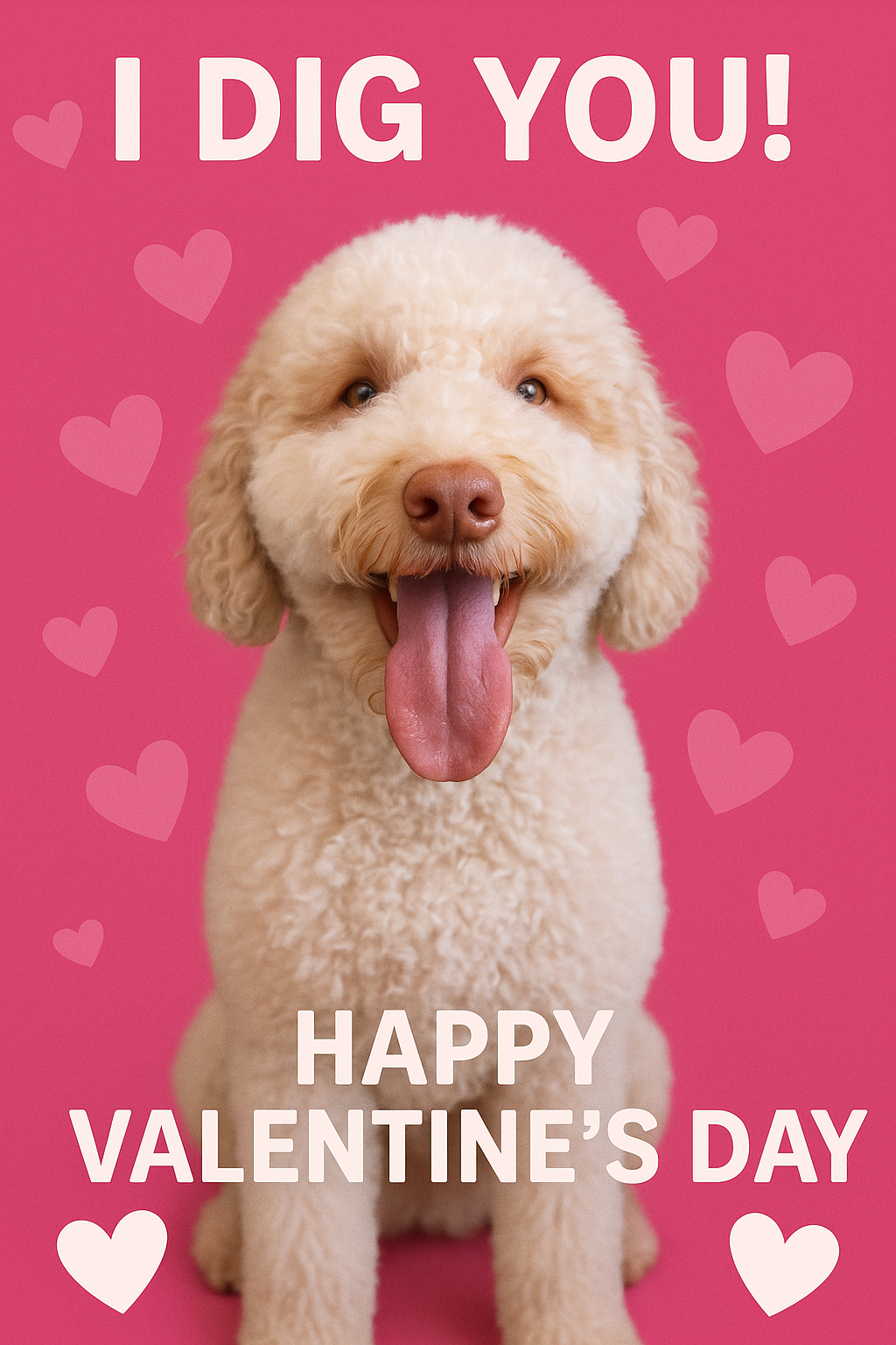 Mom made some adorable Valentine cards of me, and I hope they make you smile. If you want to send them to your Valentine, please do. Nothing says “I love you” like a fluffy labradoodle staring into your soul.