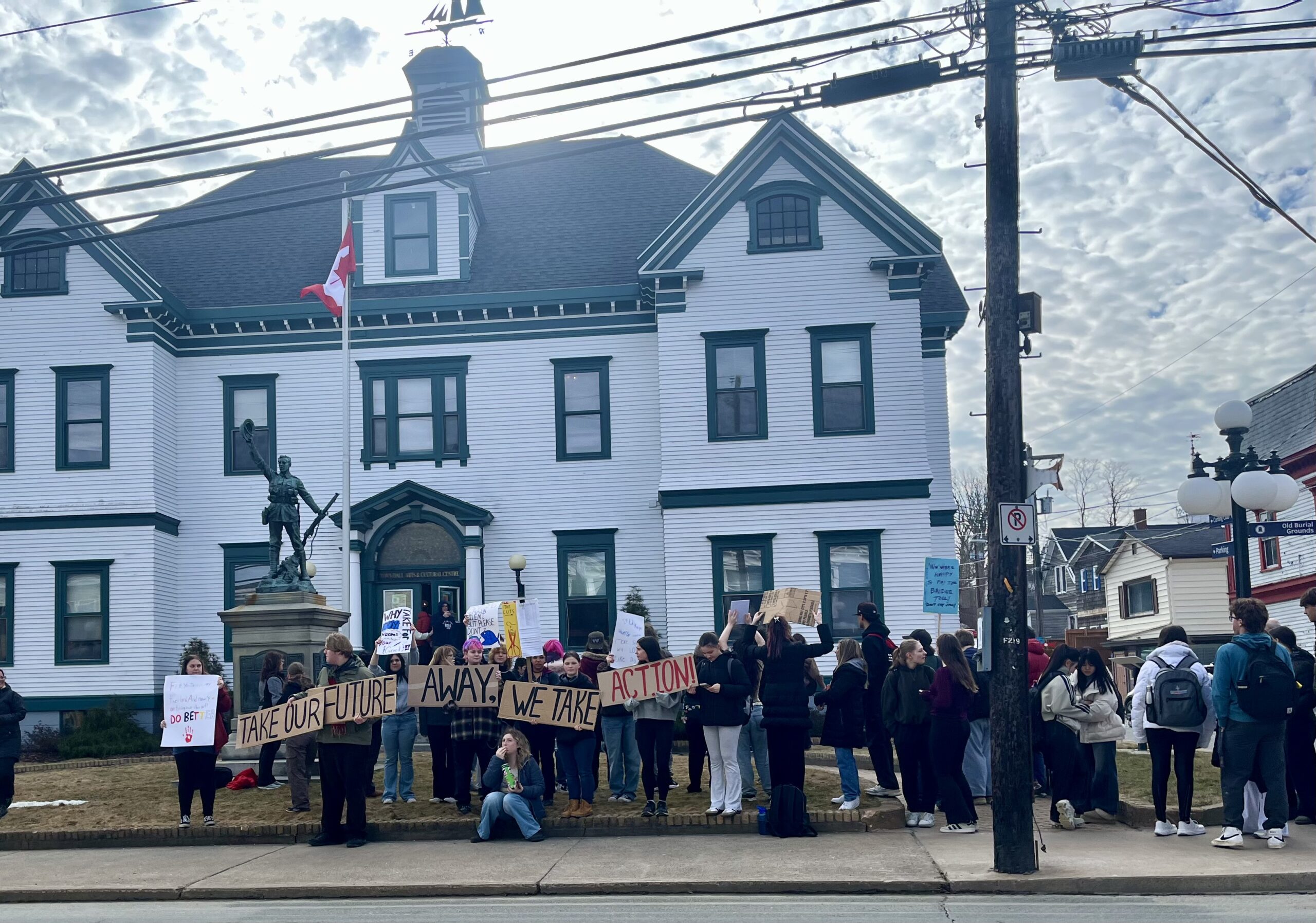 Acadia News spoke with several students who took part in the protest. Many said they were concerned about cuts to arts programming, the impact on student mental health, and the loss of independence tied to transportation changes.
