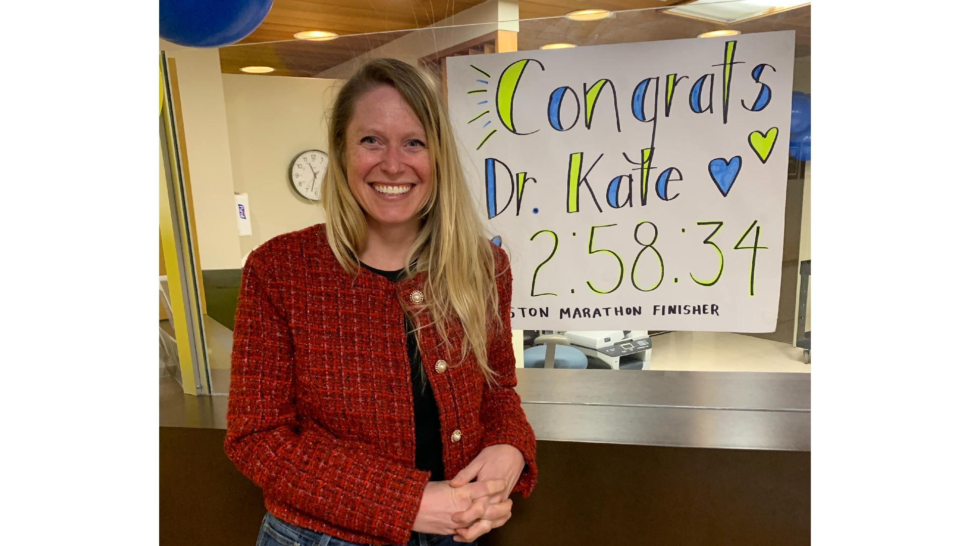 This year, MacInnes – fondly known around the hospital as ‘Dr. Kate’- not only finished at 2:58:34 but also had the chance to honour her cancer patients at Mile 19, one of the most challenging sections of the race.