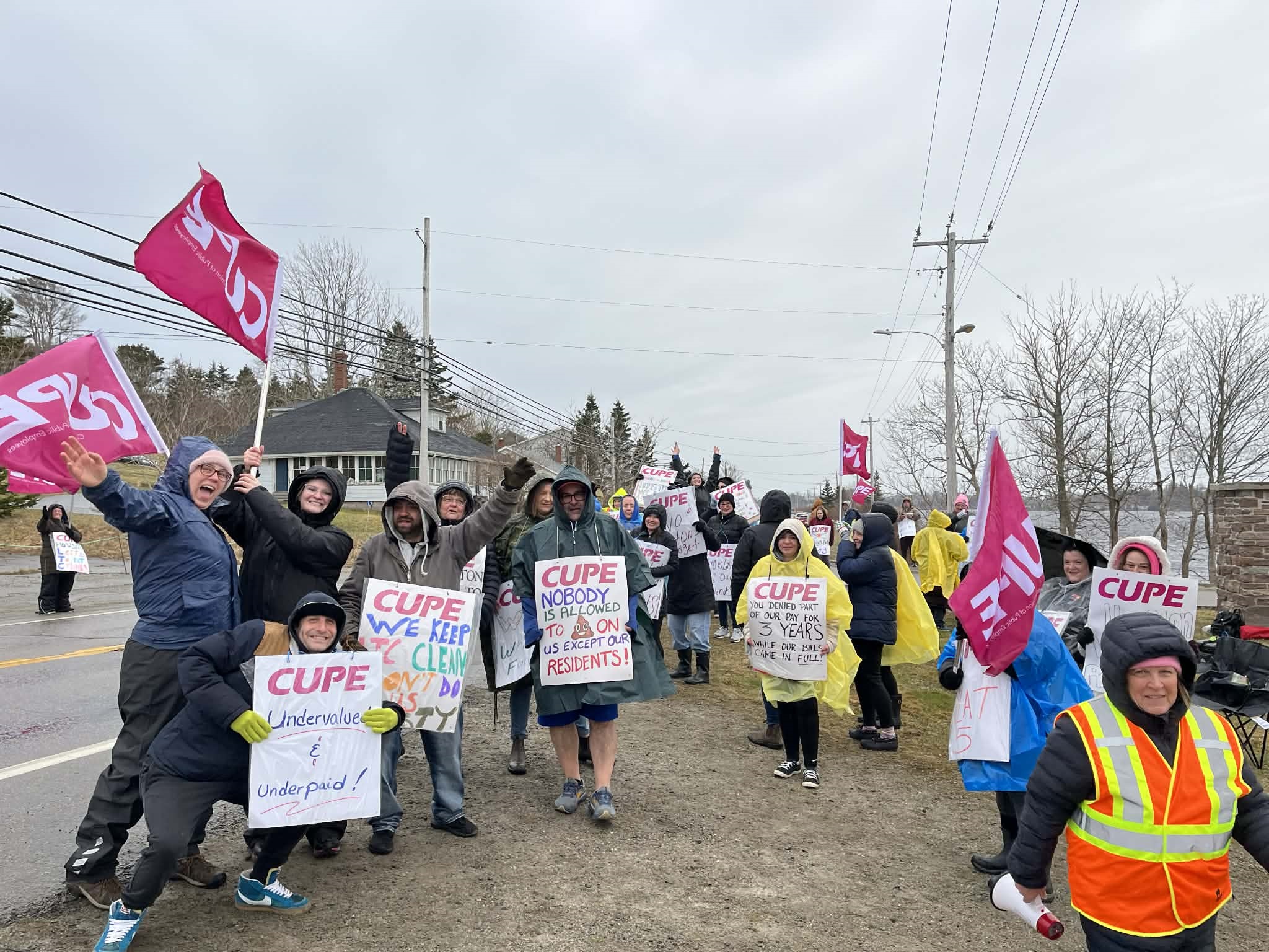 Meanwhile, workers from a pair of nursing homes in Yarmouth began the strike in the rain Monday morning.